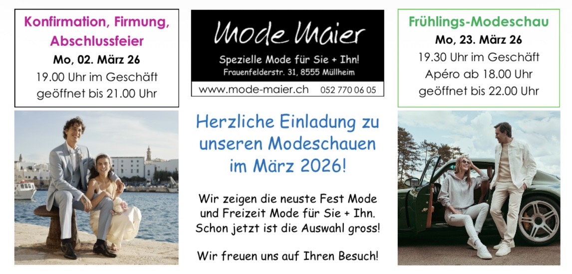 Modeschau 31. März 2025 Modeschau 10. März 2025 Modeschau 5. Okt. 2024 (Apéro)